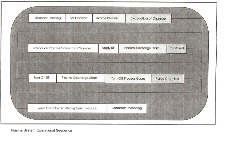 Plasma processing in Glow Research plasma systems is accomplished through the use of a low pressure, RF induced gaseous discharge. The material or specimen is loaded into the reaction CHAMBER. The CHAMBER is evacuated to a mild vacuum by a mechanical vacuum pump. A process gas is drawn through the CHAMBER over the specimen increasing the CHAMBER pressure, depending on the application. RF power is applied to the CHAMBER at a frequency of 13.56Mhz., or 100 kHz. This excites the process gas atoms or molecules and dissociates them into chemically active species. These species are very short lived and recombine to form the original gas molecules as soon as they are carried out of the reaction CHAMBER. The plasma byproducts (unused process gas and volatilized material from the sample surface) are carried away by the vacuum.