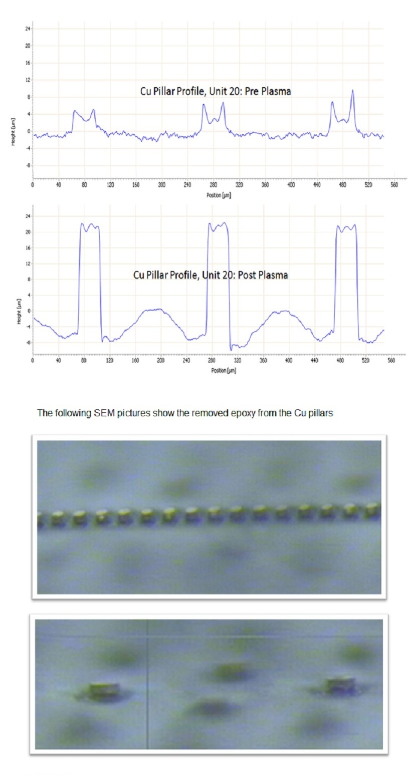 -Plasma Removal of NCP Encapsulant to reveal Copper Pillars using the powered electrode shelf in the OptiGlow ACE system